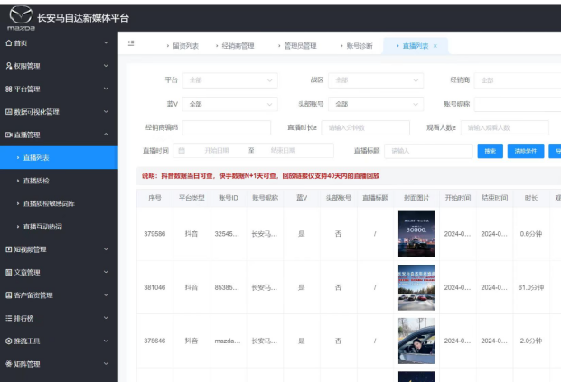 1. 自动采集抖音、快手、汽车之家、小红书、懂车帝等平台上4S店的短视频和直播内容。